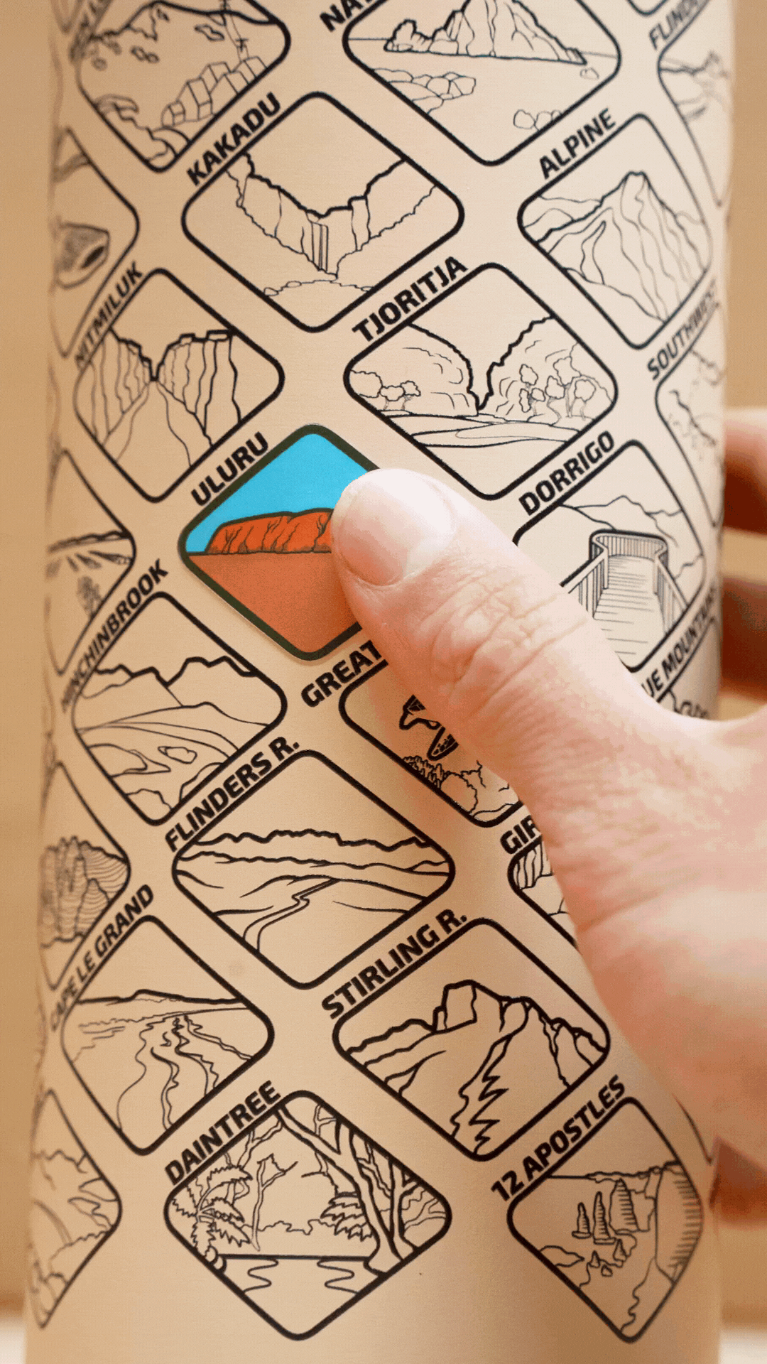 Love the Australian water bottle. Also bought the WA coffee cup, gave both as 21st presents to our son’s girlfriend - she absolutely adored them. They are both super keen to travel to more NP’s around the country so they can add the stickers. Fantastic idea and beautifully done - a worthwhile momento and souvenir for all visitors and travellers.